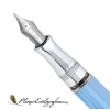 Aurora Pope Francis Fountain Pen. Limited and numbered edition with cap made of solid 925 thousandths silver, light blue marbled resin body, integrated piston loading system, rhodium-plated solid 18-carat gold nib and screw closure system. Length with cap posted: 16.6 cm. Total weight: 23 gr.