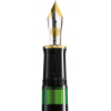 Its beautiful cap is also made of high-quality black resin and has a brass connector piece and ornamental elements made, like those distributed on other parts of the fountain pen, in 24-karat gold-plated. In this sense, the imposing jewel that crowns it stands out, decorated with the famous logo of the German firm, the double ring that adorns its base and its beautiful clip, with the unmistakable silhouette in the shape of a pelican's beak.